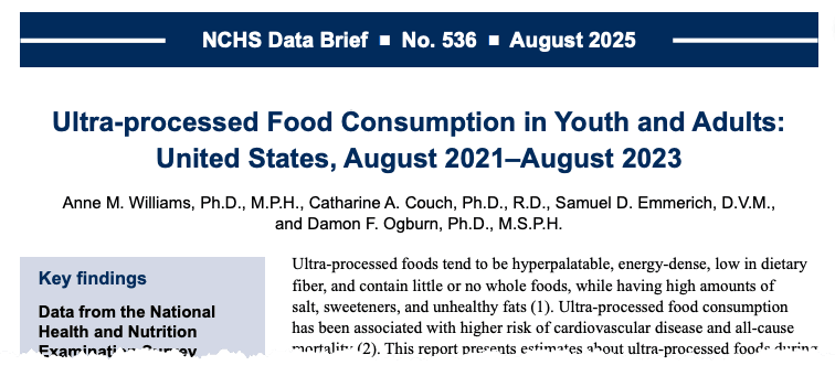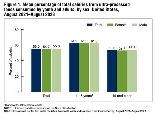 Here are the highlights from the CDC's new report titled "Ultra-processed Food Consumption in Youth and Adults: United States, August 2021–August 2023":