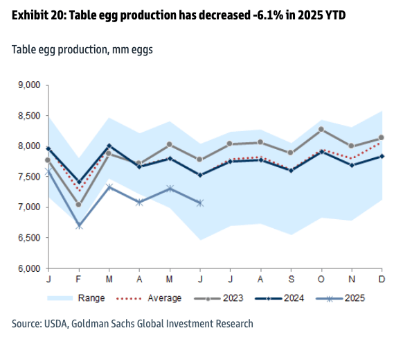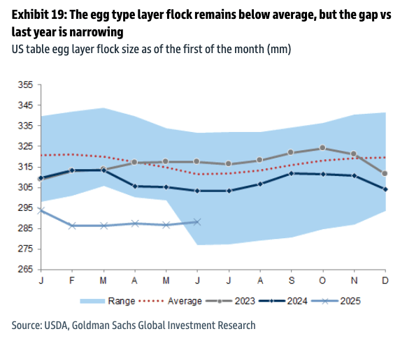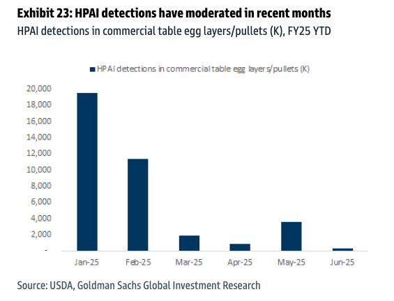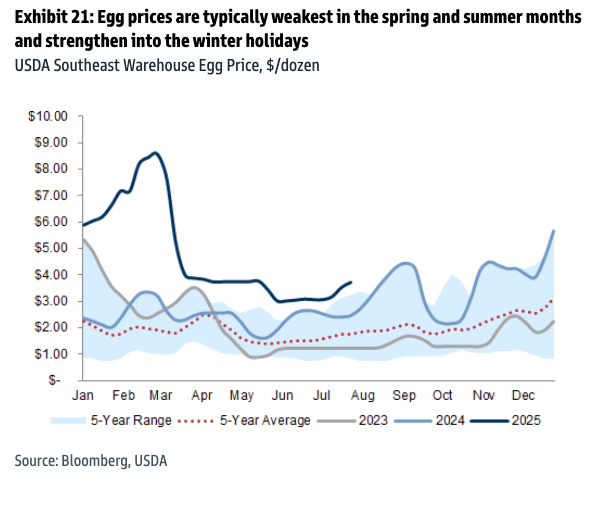 The analysts provided further insight into the normalization of the egg market, adding, "egg supply to accelerate in 2H25":