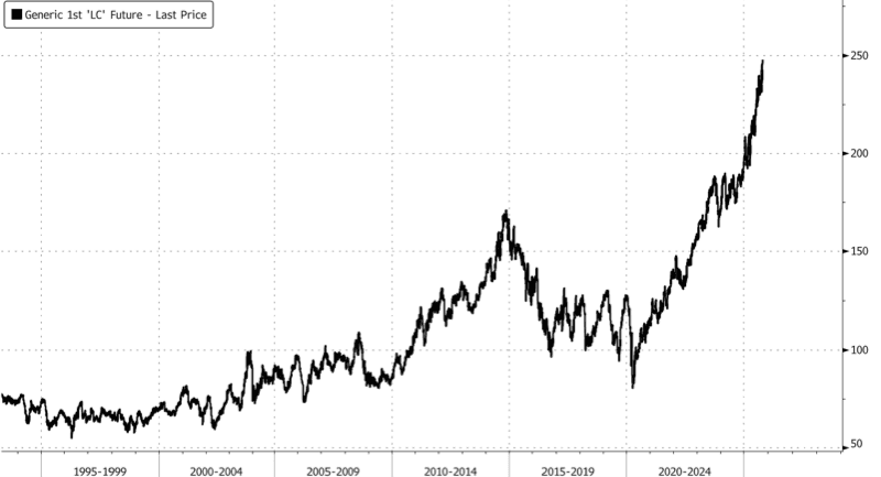 Live Cattle futures in the U.S. have erupted similarly to gold and silver.