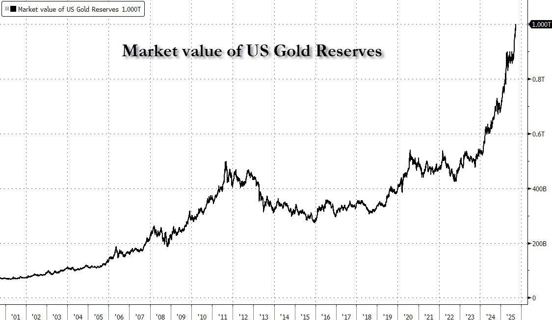 Gold hit yet another record, topping $3,820 and pushing the market value of US gold reserves above $1 trillion, while the dollar tumbles as clock ticks toward US shutdown deadline.